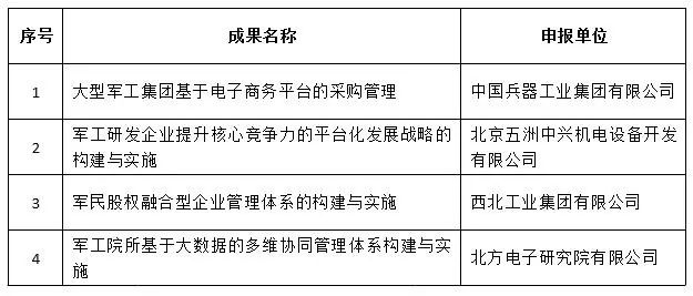 國(guó)防科技工業(yè)企業(yè)管理創(chuàng)新成果