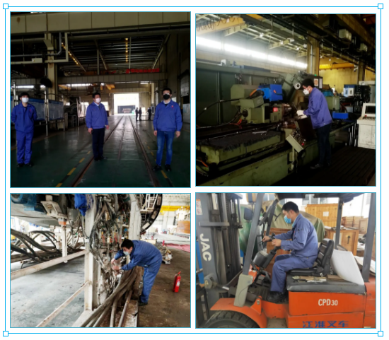 “防疫物資到位、人員排查到位、復(fù)工手續(xù)齊全。疫情防控關(guān)口已下沉到班組,生產(chǎn)正常推進(jìn)。” 經(jīng)過緊張有序的前期準(zhǔn)備工作,地處湖北武漢的中國兵器工業(yè)集團(tuán)武重集團(tuán)正式進(jìn)入復(fù)工復(fù)產(chǎn)狀態(tài)。 3月19日上午8時(shí),首批復(fù)工人員準(zhǔn)時(shí)抵達(dá)公司,戴著口罩,在接受體溫檢測、手部消毒后,進(jìn)入廠區(qū)。 提前謀劃 打好“雙戰(zhàn)役” 3月13日以來,武重集團(tuán)先后召開公司黨委會(huì)議、董事長辦公會(huì),傳達(dá)學(xué)習(xí)習(xí)近平總書記考察湖北新冠肺炎疫情防控工作時(shí)的重要講話精神,樹信心、鼓干勁、戰(zhàn)疫情、促發(fā)展,動(dòng)員全公司上下緊盯全年各項(xiàng)目標(biāo)任務(wù),迎難而上、奮力拼搏,努力把疫情耽誤的時(shí)間“搶”回來,做到貫徹落實(shí)習(xí)近平總書記重要講話精神更加到位,統(tǒng)籌推進(jìn)疫情防控和企業(yè)發(fā)展更加有效。 為切實(shí)做好公司復(fù)工復(fù)產(chǎn)前后疫情防控,維護(hù)生產(chǎn)經(jīng)營正常運(yùn)行,按照復(fù)工有關(guān)要求,公司疫情防控領(lǐng)導(dǎo)小組組織制定了《復(fù)工復(fù)產(chǎn)防控新型冠狀病毒肺炎疫情工作方案》、《疫情防控應(yīng)急預(yù)案》以及疫情期間安全生產(chǎn)、員工管理、進(jìn)出廠區(qū)管理和通勤車、食堂、消毒等后勤保障工作細(xì)則等文件,配備了口罩、防護(hù)服、測溫槍、消毒水等防護(hù)用品及應(yīng)急物資,設(shè)置了應(yīng)急隔離區(qū),確保復(fù)工后的防疫所需。 周密部署 筑牢“防疫墻” “復(fù)工任務(wù)雖急,人員安全更重,必須把好人員進(jìn)場第一關(guān)?!痹谌藛T進(jìn)場管控上,武重集團(tuán)建立了這樣一條“硬核規(guī)定”:員工必須每天通過企業(yè)微信提交體溫信息,建立員工健康檔案,筑牢復(fù)工“防疫墻”。 在接到復(fù)工批復(fù)后,公司領(lǐng)導(dǎo)多次帶隊(duì)深入生產(chǎn)現(xiàn)場,檢查疫情防控工作和復(fù)工前的各項(xiàng)準(zhǔn)備工作,協(xié)調(diào)解決項(xiàng)目在復(fù)工過程中存在的問題,要求通過優(yōu)化產(chǎn)出計(jì)劃拉動(dòng)復(fù)工復(fù)產(chǎn)體系,使公司上下盡快進(jìn)入達(dá)產(chǎn)達(dá)效狀態(tài)。3月17日到18日,各單位按照各項(xiàng)預(yù)案措施針對安全、設(shè)備、就餐、消毒、乘車、住宿、應(yīng)急體系演練、職工隔離工作等方面進(jìn)行全面排查,全力確保疫情防控精準(zhǔn)到位、安全生產(chǎn)有序推進(jìn)。 公司領(lǐng)導(dǎo)到生產(chǎn)現(xiàn)場、職工食堂察看復(fù)工復(fù)產(chǎn)各項(xiàng)準(zhǔn)備工作 做實(shí)做細(xì) 當(dāng)好“排頭兵” 新冠肺炎疫情發(fā)生以來,武重集團(tuán)迅速投身戰(zhàn)“疫”,充分利用武重集團(tuán)“大國重器”技術(shù)及加工能力優(yōu)勢,多次為火神山醫(yī)院、雷神山醫(yī)院建設(shè)、防疫物資加工等急難險(xiǎn)重任務(wù)貢獻(xiàn)力量,展示了武重人“召之即來,來之能戰(zhàn),戰(zhàn)之必勝”的優(yōu)良作風(fēng)。 隨著復(fù)工的啟動(dòng),武重集團(tuán)生產(chǎn)指揮系統(tǒng)迅速重新編制了年度施工進(jìn)度計(jì)劃,將延誤工期時(shí)間分解到各個(gè)施工階段,保證施工節(jié)點(diǎn)任務(wù)完成,多個(gè)重大項(xiàng)目將從“暫?!蹦J角袚Q為“快進(jìn)”模式,加快復(fù)工復(fù)產(chǎn)。 進(jìn)入工作區(qū)前進(jìn)行體溫測量及消毒 復(fù)工單位開展班前會(huì) 各單位復(fù)工有序進(jìn)行 食堂用餐避免扎堆 武重集團(tuán)將以鏗鏘的步伐、昂揚(yáng)的斗志,聚焦重點(diǎn)項(xiàng)目,全力以赴做好復(fù)工復(fù)產(chǎn)各項(xiàng)工作,繼續(xù)發(fā)揮好大國重器、央企頂梁柱作用,奮力奪取疫情防控和企業(yè)發(fā)展雙勝利。(武重集團(tuán)) |