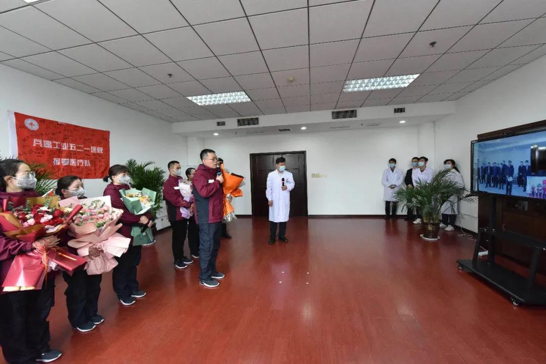 焦開河指出,面對突如其來的新冠肺炎疫情的嚴(yán)峻考驗(yàn),521醫(yī)院7名援鄂醫(yī)療隊(duì)隊(duì)員堅(jiān)決響應(yīng)習(xí)近平總書記和黨中央號(hào)召,肩負(fù)集團(tuán)公司黨組和全集團(tuán)23萬干部職工的重托,聞令而動(dòng)、挺身而出,奔赴抗擊疫情第一線。援鄂期間,杭博、郭苓、緱豪兵、楊嬌4位同志,充分發(fā)揮了共產(chǎn)黨員的先鋒模范作用,呂戈、侯永生、曹利娜3位同志火線入黨,不辱使命、不負(fù)重托,出色完成了任務(wù)。7位同志的辛勤付出,充分體現(xiàn)了“把一切獻(xiàn)給黨”的人民兵工精神,體現(xiàn)了大愛無疆的醫(yī)者仁心,體現(xiàn)了集團(tuán)公司大國頂梁柱的責(zé)任擔(dān)當(dāng),為黨旗爭了光,為集團(tuán)公司添了彩。全集團(tuán)廣大干部職工要學(xué)習(xí)他們的先進(jìn)事跡,為奪取疫情防控和實(shí)現(xiàn)全年目標(biāo)任務(wù)的“雙勝利”不懈奮斗!