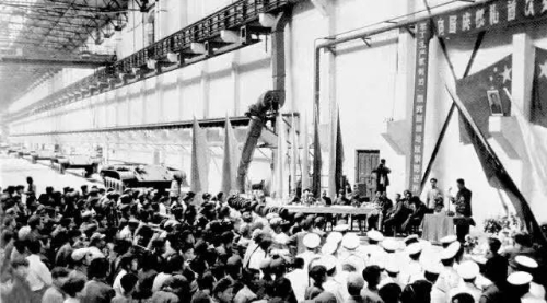 1959年是中華人民共和國建國十周年,工廠接受了生產(chǎn)32輛坦克交部隊編隊參加檢閱的任務(wù)。強烈的榮譽感使全廠上下歡欣鼓舞、斗志旺盛?!皼Q心書”、“保證書”像紛揚的雪花貼滿墻壁。“天大的困難也要戰(zhàn)勝,堅決為國爭光,為廠爭譽”的豪情在人們心中激蕩。