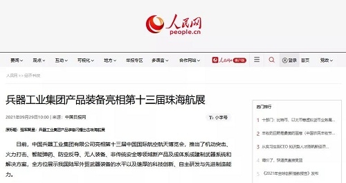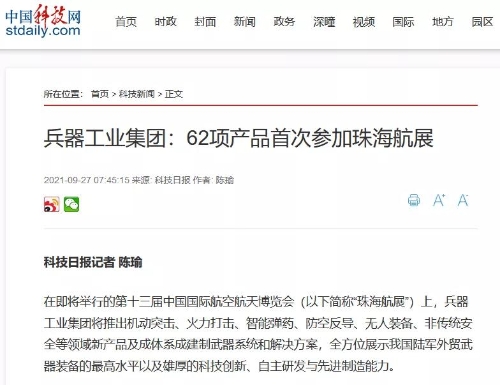 圖片中國(guó):強(qiáng)軍聚星 兵器工業(yè)集團(tuán)產(chǎn)品裝備閃耀中國(guó)航展2021-09-30