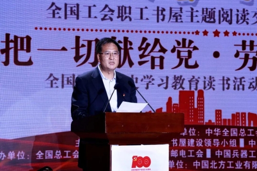活動由全總宣教部、中國國防郵電工會、中國兵器工業(yè)集團有限公司黨群工作部、中國工人出版社共同承辦,中國北方工業(yè)有限公司協(xié)辦。來自中華全國總工會、全國工會職工書屋建設(shè)領(lǐng)導(dǎo)小組成員、部分全國工會職工書屋公益代言人,各全國產(chǎn)業(yè)工會、全總各部門負(fù)責(zé)同志,部分省市總工會副主席、宣教部長,兵器工業(yè)集團一線勞模工匠、職工代表等參加活動。