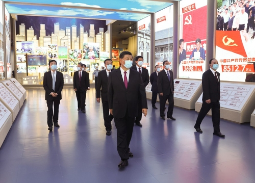 新近落成的中國共產黨歷史展覽館巍然矗立,氣勢恢宏。下午3時20分許,習近平等黨和國家領導同志來到這里,步入展廳參觀展覽。展覽以“不忘初心、牢記使命”為主題,精心設計了“建立中國共產黨 奪取新民主主義革命偉大勝利”、“成立中華人民共和國 進行社會主義革命和建設”、“實行改革開放 開創(chuàng)和發(fā)展中國特色社會主義”、“推進中國特色社會主義進入新時代 全面建成小康社會 開啟全面建設社會主義現代化國家新(人民日報)征程”4個部分,通過2600余幅圖片、3500多件套文物實物,第一次全方位、全過程、全景式、史詩般展現中國共產黨波瀾壯闊的百年歷程,濃墨重彩地反映黨的不懈奮斗史、不怕犧牲史、理論探索史、為民造福史、自身建設史,使人們深刻認識到紅色政權來之不易、新中國來之不易、中國特色社會主義來之不易,深刻認識到中國共產黨為什么能、馬克思主義為什么行、中國特色社會主義為什么好。