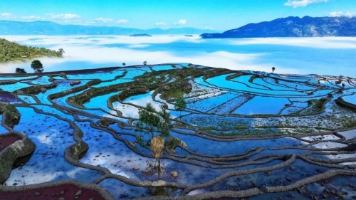 紅河縣撒瑪壩萬(wàn)畝梯田面積約1.6萬(wàn)多畝,有4300多級(jí),梯田依山開墾,順勢(shì)造田,蔚為壯觀。作為世界文化遺產(chǎn)、全球重要農(nóng)業(yè)文化遺產(chǎn),紅河縣撒瑪壩梯田于2018年4月被上海大世界基尼斯總部授予中國(guó)面積最大的哈尼梯田(連片),2021年5月通過國(guó)家4A級(jí)旅游景區(qū)評(píng)定。