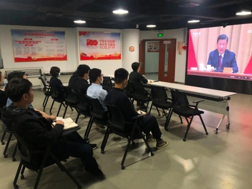 ▲特能集團(tuán)團(tuán)委組織團(tuán)員青年收看現(xiàn)場直播