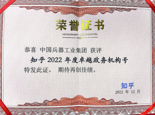 近日,中國(guó)兵器工業(yè)集團(tuán)有限公司知乎號(hào)、抖音號(hào)分獲表彰,其中,集團(tuán)公司知乎號(hào)獲評(píng)知乎頒發(fā)的“知乎2022年度卓越政務(wù)機(jī)構(gòu)號(hào)”;集團(tuán)公司抖音號(hào)獲評(píng)抖音頒發(fā)的2022年政務(wù)抖音號(hào)“優(yōu)秀創(chuàng)作者”。